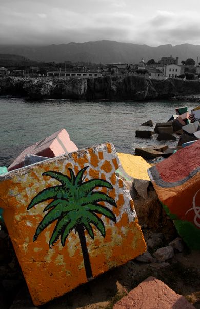 situados en el puerto de Llanes, es la forma en que Ibarrola convierte un puerto en una gigantesta escultura